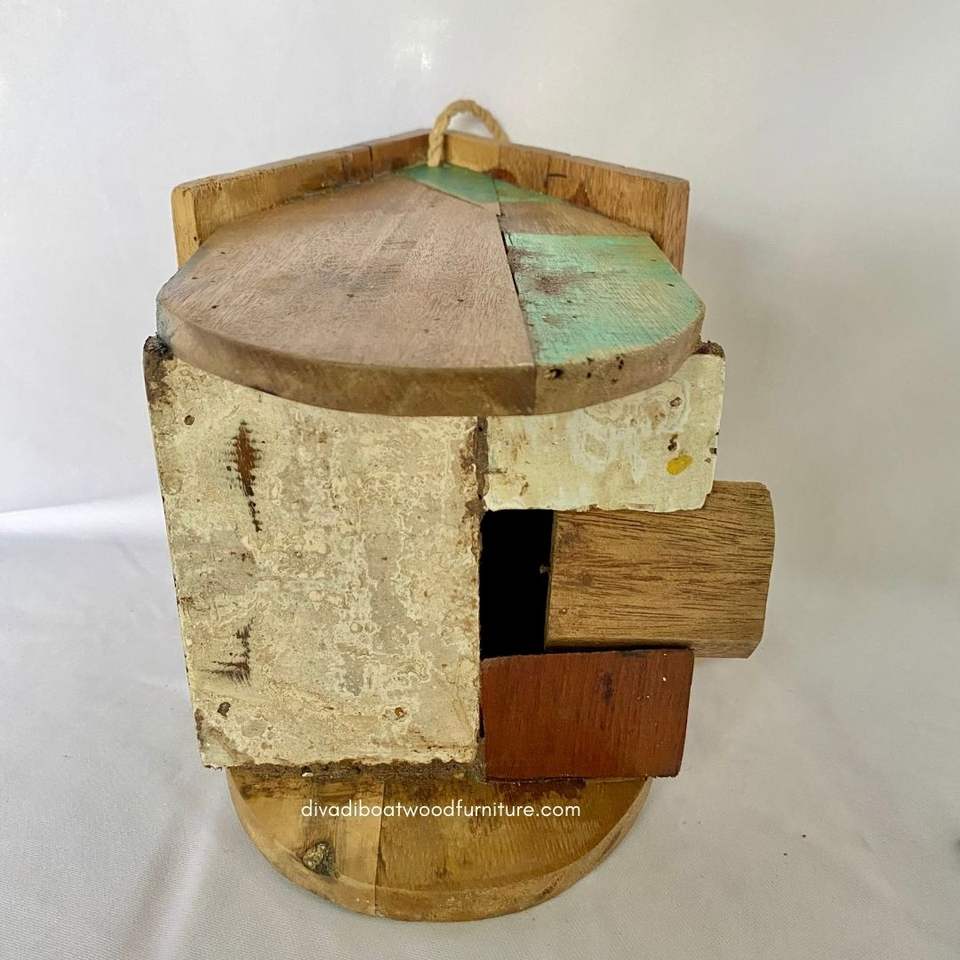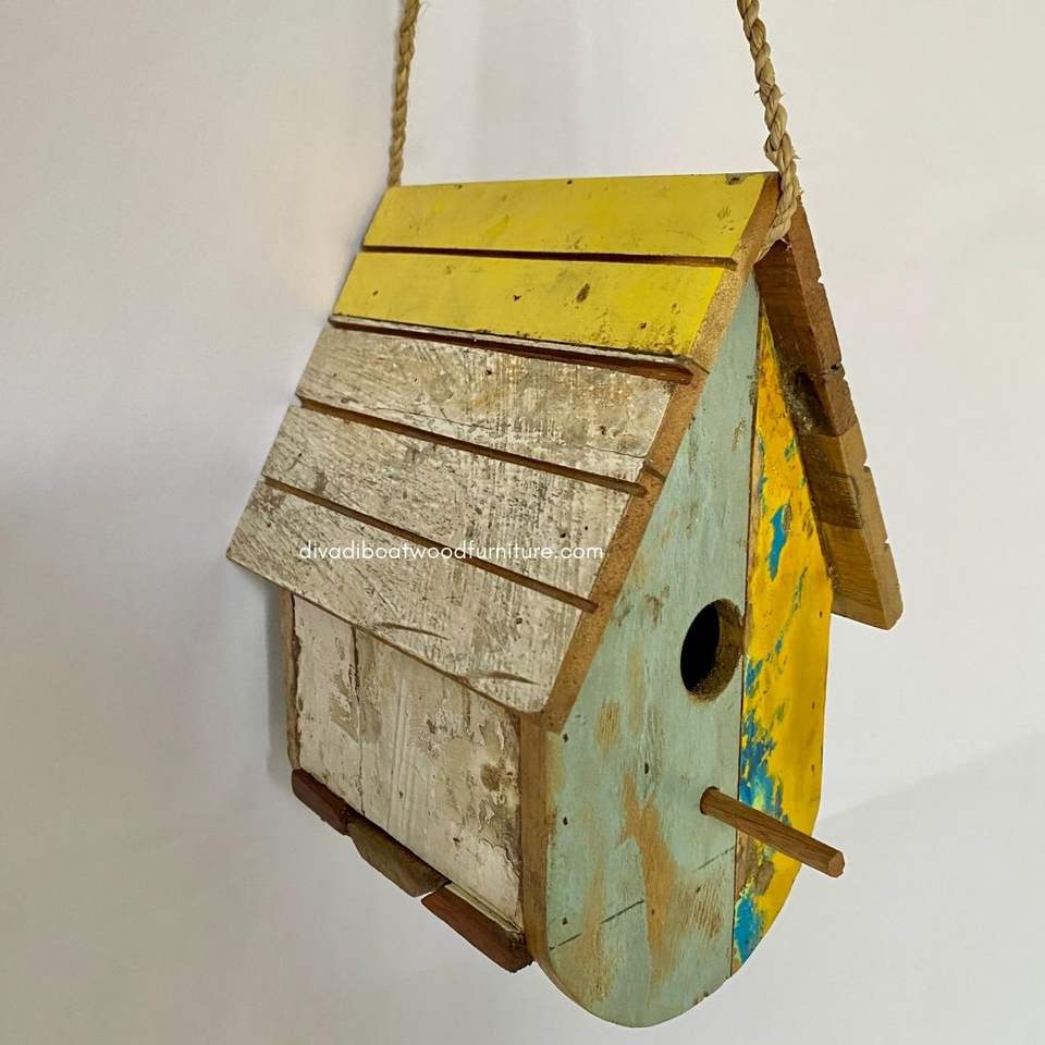 บ้านนกทำมือจากไม้รีไซเคิล บ้านสัตว์เลี้ยงแบบยั่งยืน รูปทรงเรือ สีไม้ธรรมชาติ บ้านนกแบบดั้งเดิม สำหรับนกขนาดเล็ก ใช้กลางแจ้ง