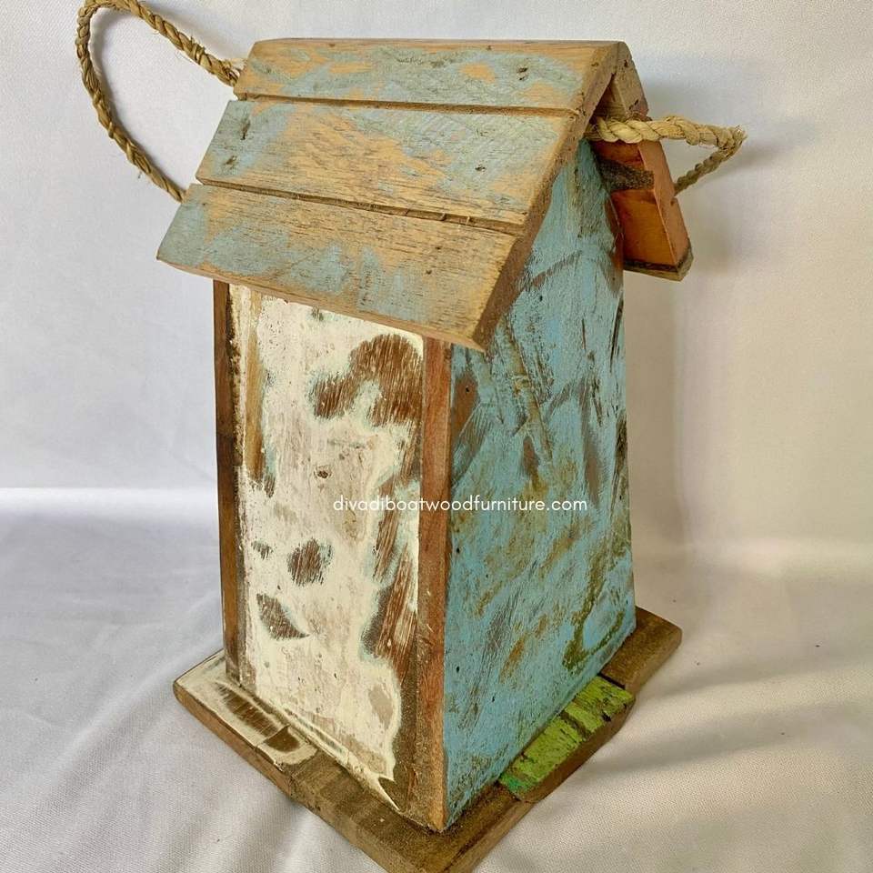 บ้านนกทำมือจากไม้รีไซเคิล บ้านสัตว์เลี้ยงแบบยั่งยืน รูปทรงเรือ สีไม้ธรรมชาติ บ้านนกแบบดั้งเดิม สำหรับนกขนาดเล็ก ใช้กลางแจ้ง