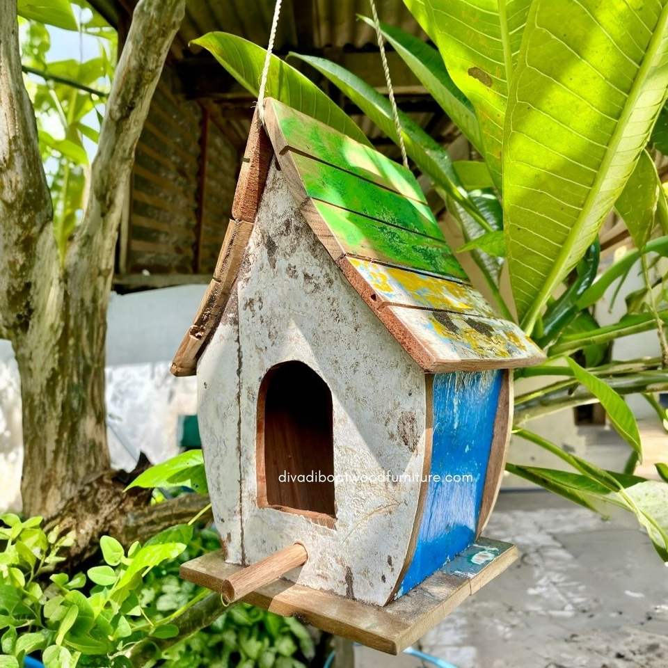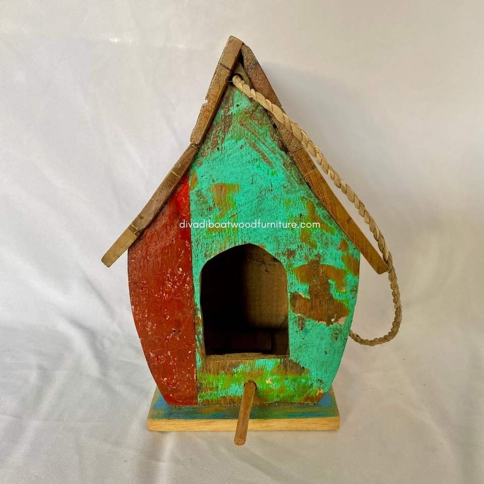 บ้านนกทำมือจากไม้รีไซเคิล บ้านสัตว์เลี้ยงแบบยั่งยืน รูปทรงเรือ สีไม้ธรรมชาติ บ้านนกแบบดั้งเดิม สำหรับนกขนาดเล็ก ใช้กลางแจ้ง