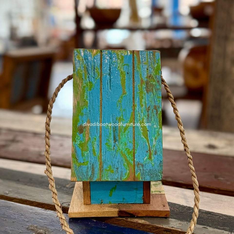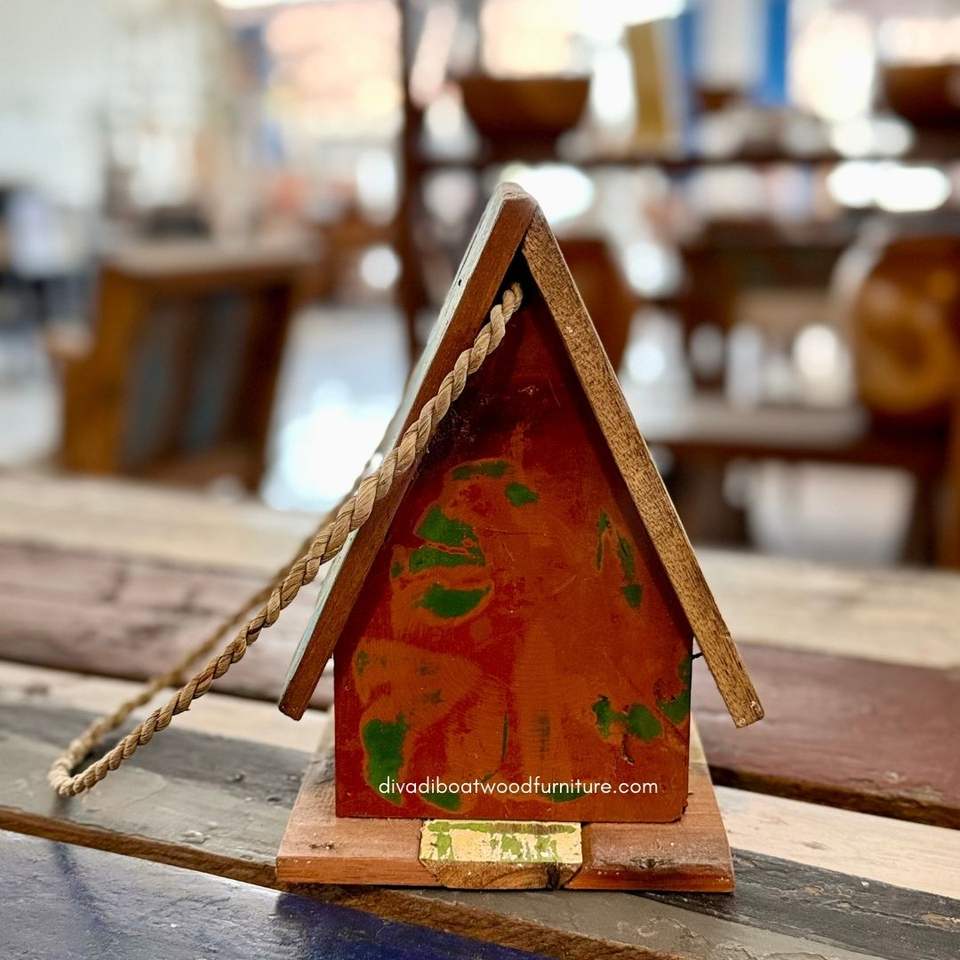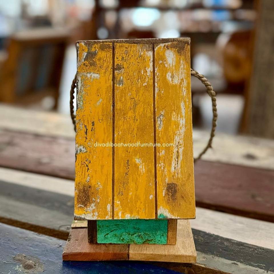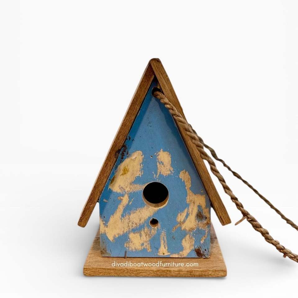 บ้านนกทำมือจากไม้รีไซเคิล บ้านสัตว์เลี้ยงแบบยั่งยืน รูปทรงเรือ สีไม้ธรรมชาติ บ้านนกแบบดั้งเดิม สำหรับนกขนาดเล็ก ใช้กลางแจ้ง