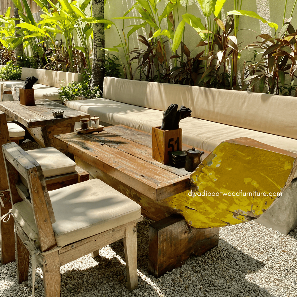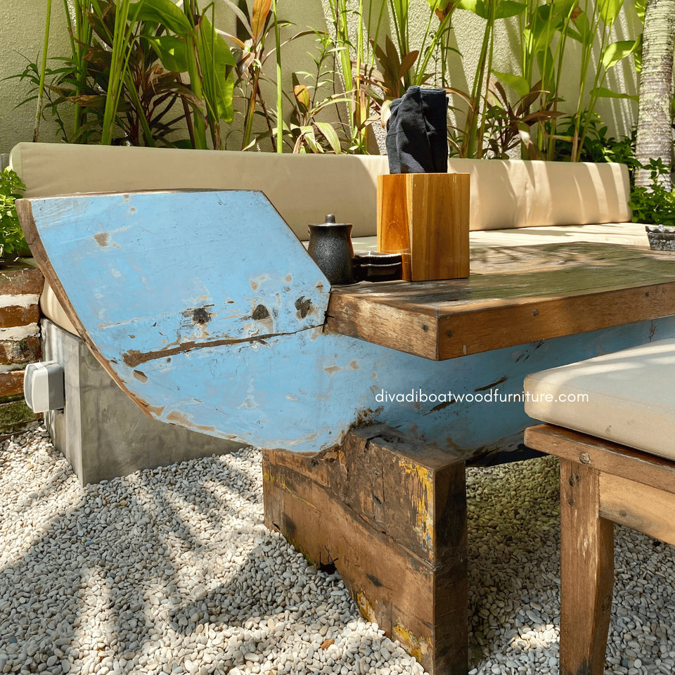 โต๊ะกาแฟไม้เรือรีไซเคิล หน้ากระจก สีเดิม งานแฮนด์เมด สไตล์วินเทจโบราณ สำหรับบ้าน ร้านอาหาร เฟอร์นิเจอร์