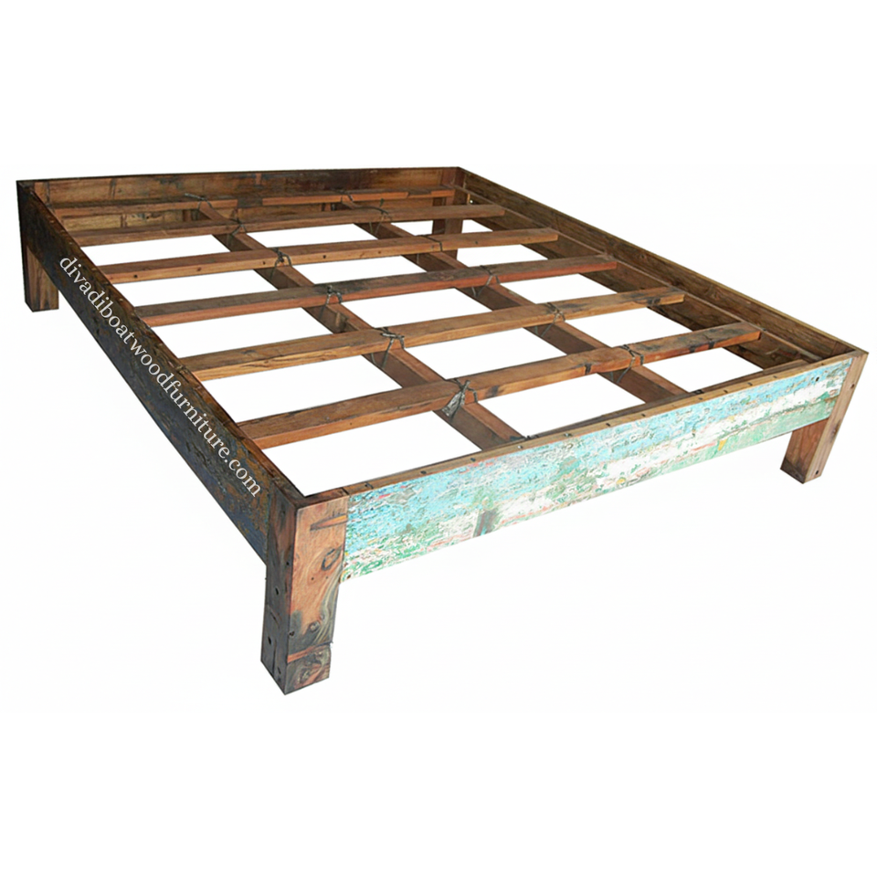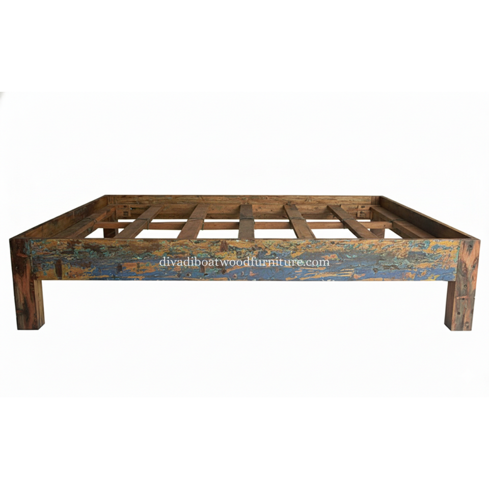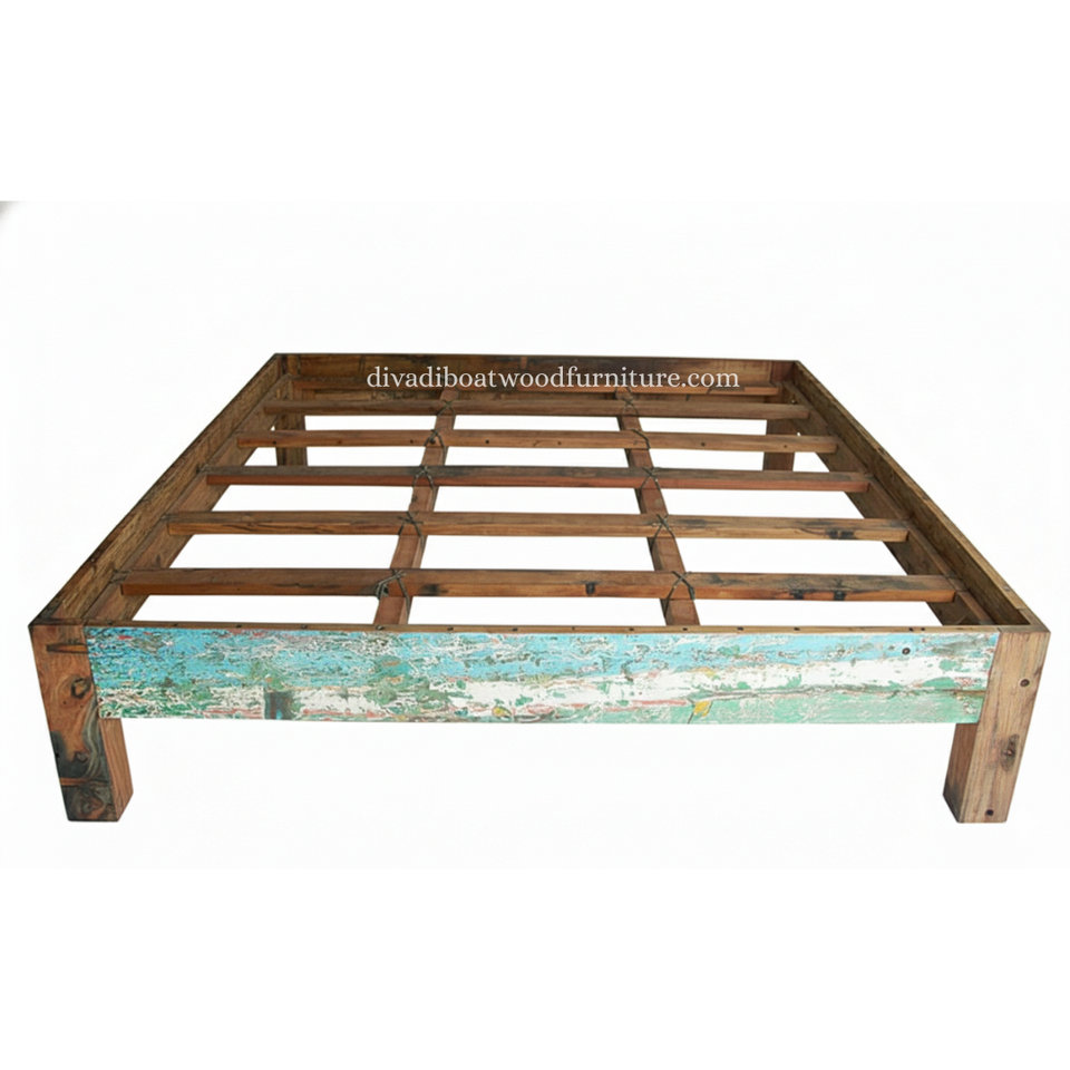 เตียงคู่ไม้เรือรีไซเคิลแบบถอดประกอบได้ ไม่มีหัวเตียง สีธรรมชาติ เป็นมิตรกับสิ่งแวดล้อม เฟอร์นิเจอร์ทำมืออย่างยั่งยืนสำหรับห้องนอน