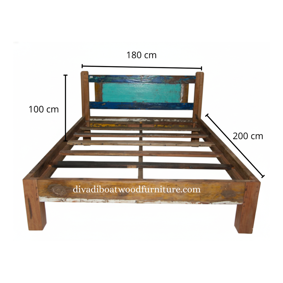 เตียงคู่ไม้เรือรีไซเคิลพร้อมหัวเตียงแบบถอดประกอบได้ สีธรรมชาติ เป็นมิตรกับสิ่งแวดล้อม เฟอร์นิเจอร์ทำมืออย่างยั่งยืน ดีไซน์มินิมอล