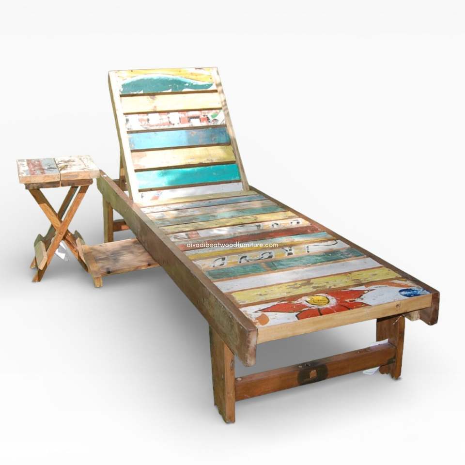 เตียงอาบแดดไม้เรือรีไซเคิลสีธรรมชาติสำหรับริมสระน้ำ ชายหาด รีสอร์ท โรงแรม วิลล่า แบบถอดประกอบได้