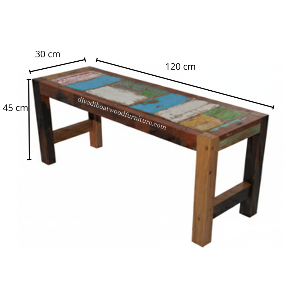 ม้านั่งไม้เรือรีไซเคิลรุ่นริต้า ขาตรง ลายปะติด สีธรรมชาติ ดีไซน์มินิมอลและยั่งยืน ใช้ได้ทั้งภายนอกและภายใน