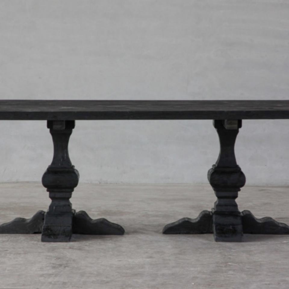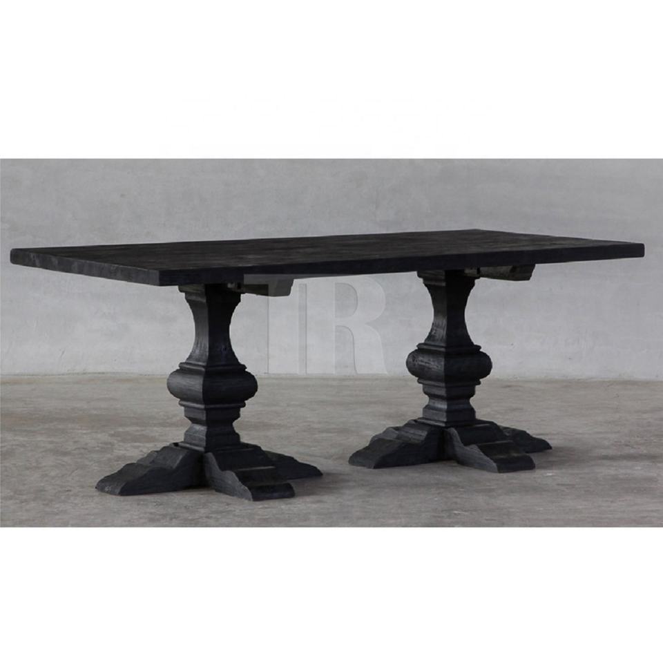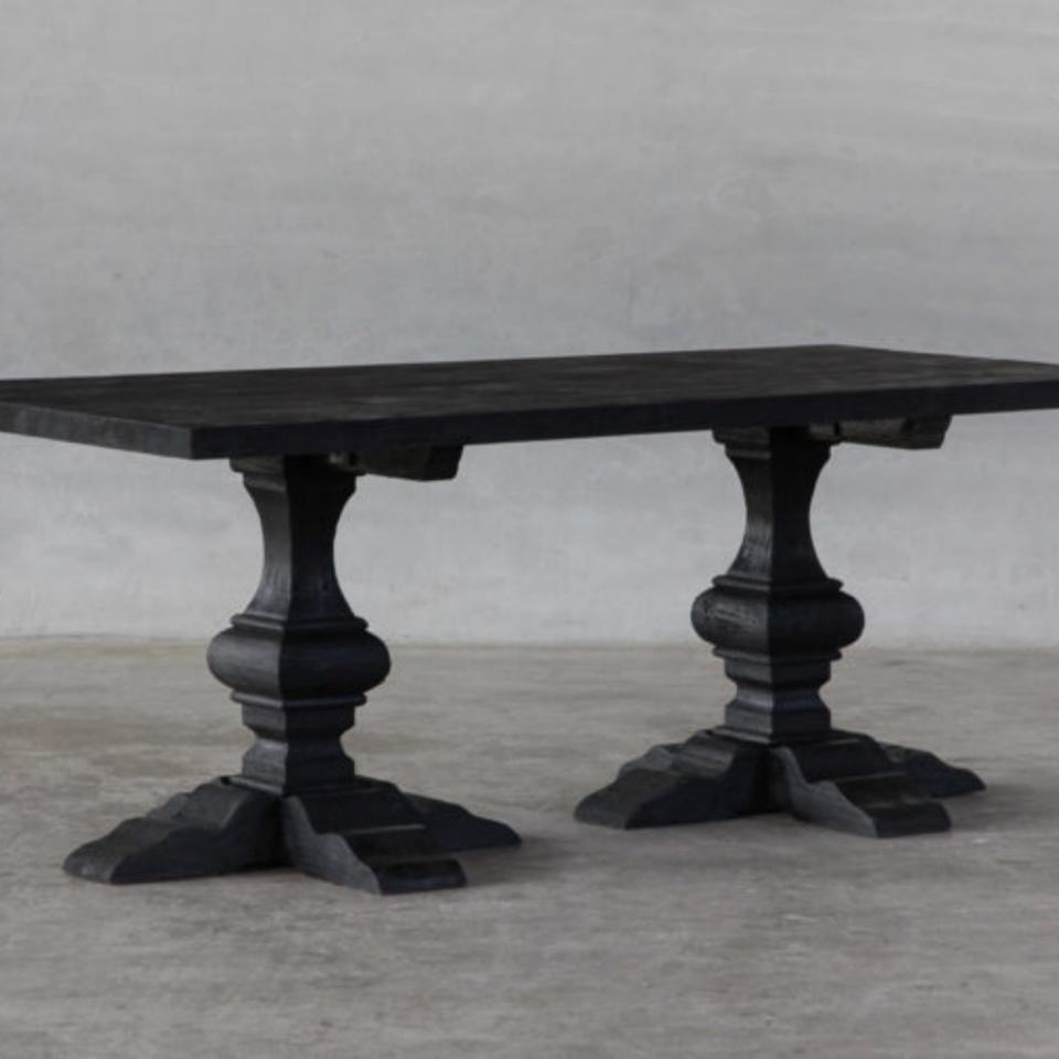 โต๊ะรับประทานอาหารทำมือจากไม้เอล์มรีเคลม สีดำเข้มแบบชาร์โคล
