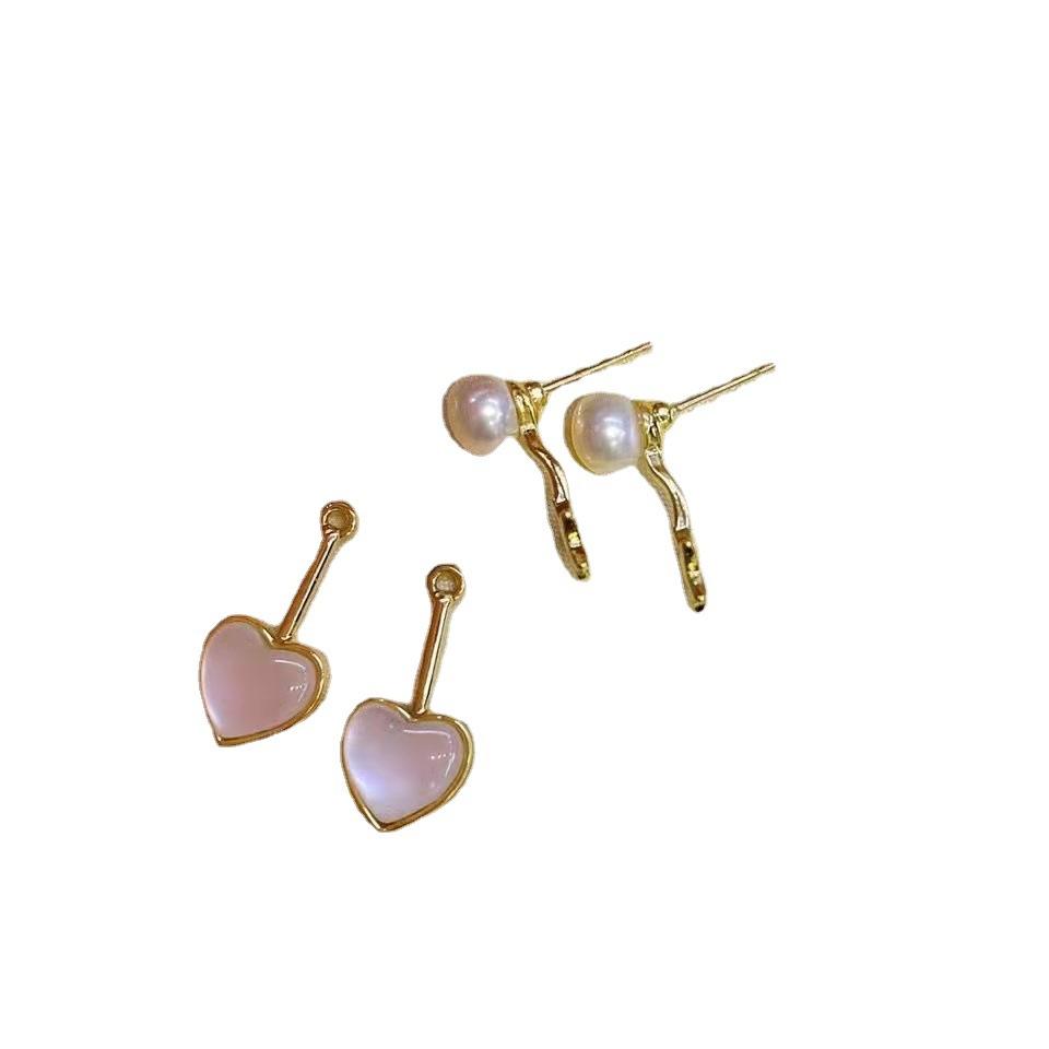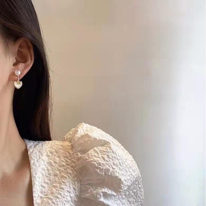 ต่างหูมุกน้ำจืดทรงหัวใจ ดีไซน์เรียบหรู ใช้ได้หลากหลาย พร้อมเข็มเงินแท้ 7-8 ชั้น