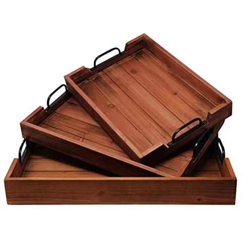 ถาดไม้อะคาเซียทรงสี่เหลี่ยมผืนผ้าขนาดใหญ่พร้อมด้ามจับชุดถาดเสิร์ฟไม้รูปทรงสี่เหลี่ยมขายดี