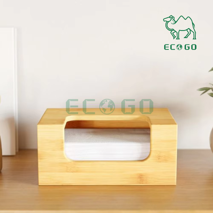 กล่องทิชชู่ไม้ไผ่ทรงสี่เหลี่ยมผืนผ้ากล่องกระดาษทิชชู่ไม้สำหรับวางบนเคาน์เตอร์โต๊ะ