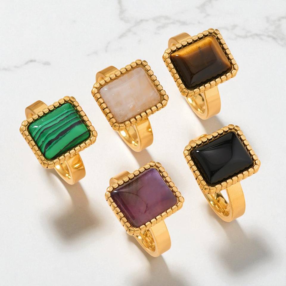 แหวนพลอยควอตซ์ทรงสี่เหลี่ยมผืนผ้า-แหวนเงิน925-เครื่องประดับแหวนชุบทองดีไซน์เนอร์แฟชั่น