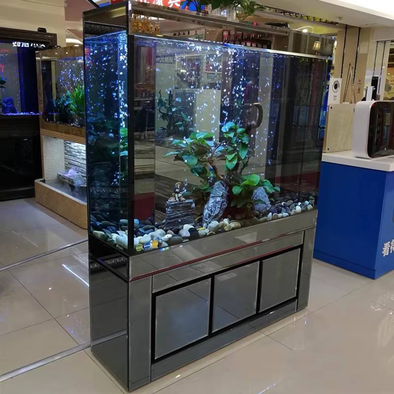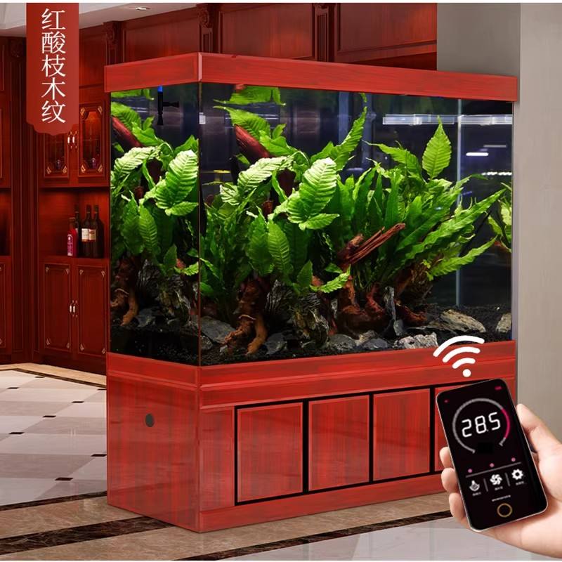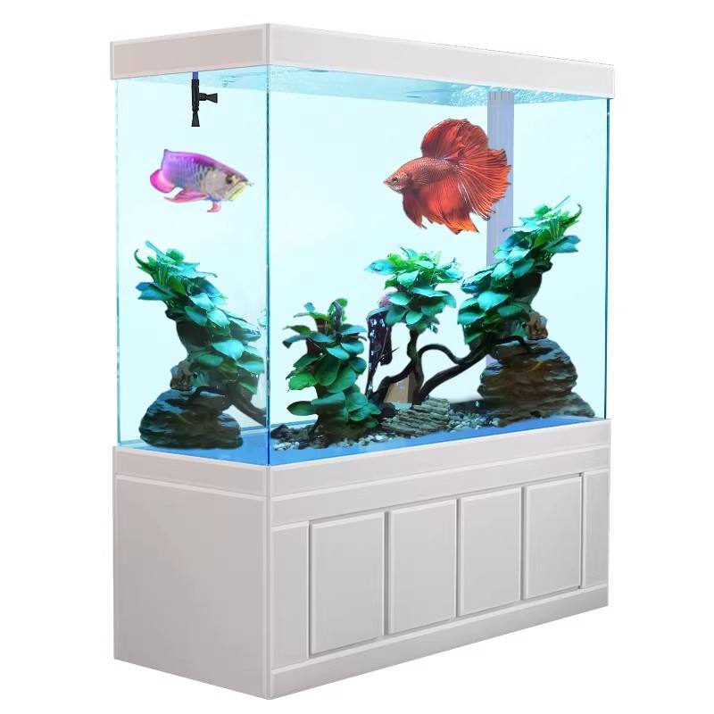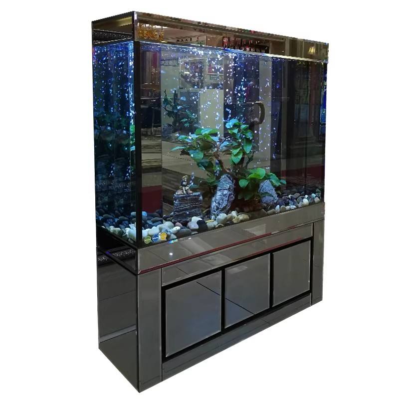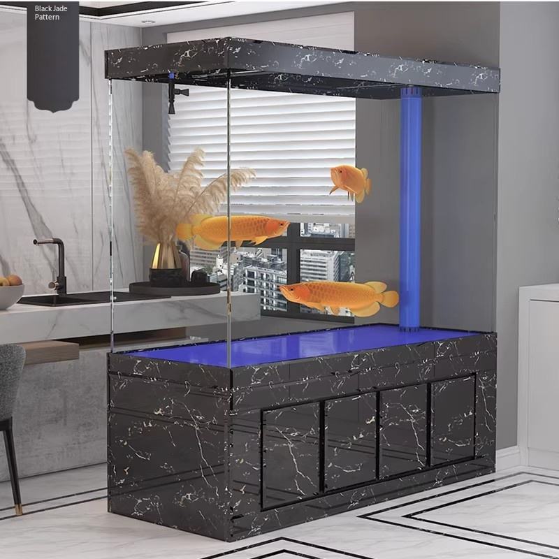 ตู้ปลาทรงสี่เหลี่ยมผืนผ้าสำหรับห้องนั่งเล่น ตู้ปลาขนาดใหญ่พร้อมผนังกั้น ระบบกรองน้ำแบบติดตั้งบนพื้น เป็นมิตรกับสิ่งแวดล้อม กระจกใสพิเศษสำหรับเลี้ยงปลาทอง