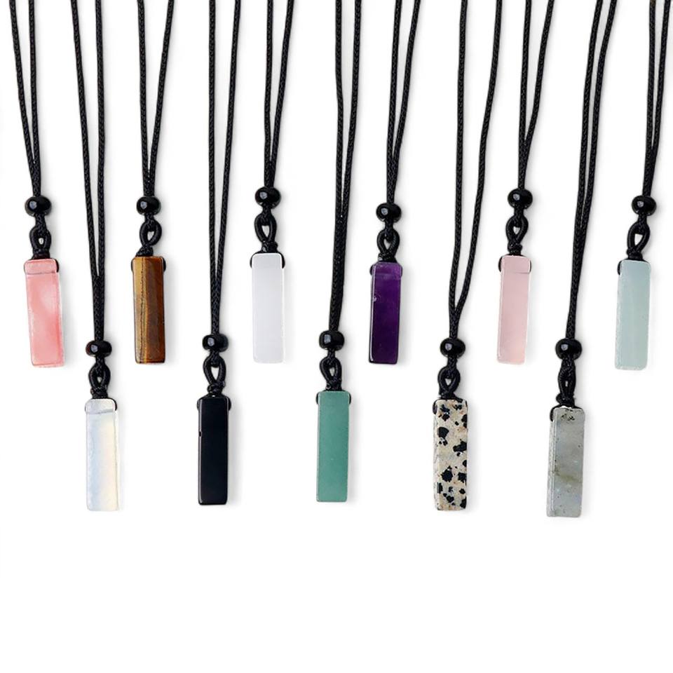 สร้อยคอจี้อัญมณีสีเขียวอเวนจูรีนสี่เหลี่ยมผืนผ้า-สร้อยคอเชือกเครื่องประดับ-อัญมณีขายส่ง