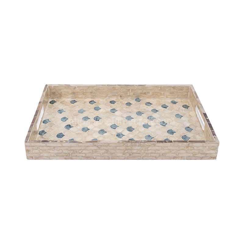 ถาดรองเสิร์ฟหอยมุกหรูหราทรงสี่เหลี่ยมผืนผ้าของตกแต่งงานหัตถกรรมเวียดนาม