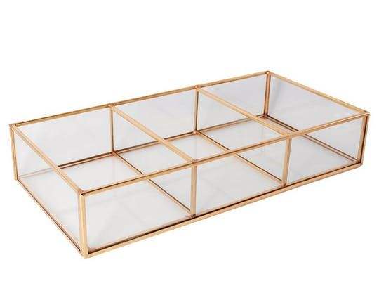 กล่องใส่เครื่องประดับโลหะและแก้วทรงสี่เหลี่ยมผืนผ้า ดีไซน์มินิมอล สำหรับเก็บเครื่องประดับมีค่า