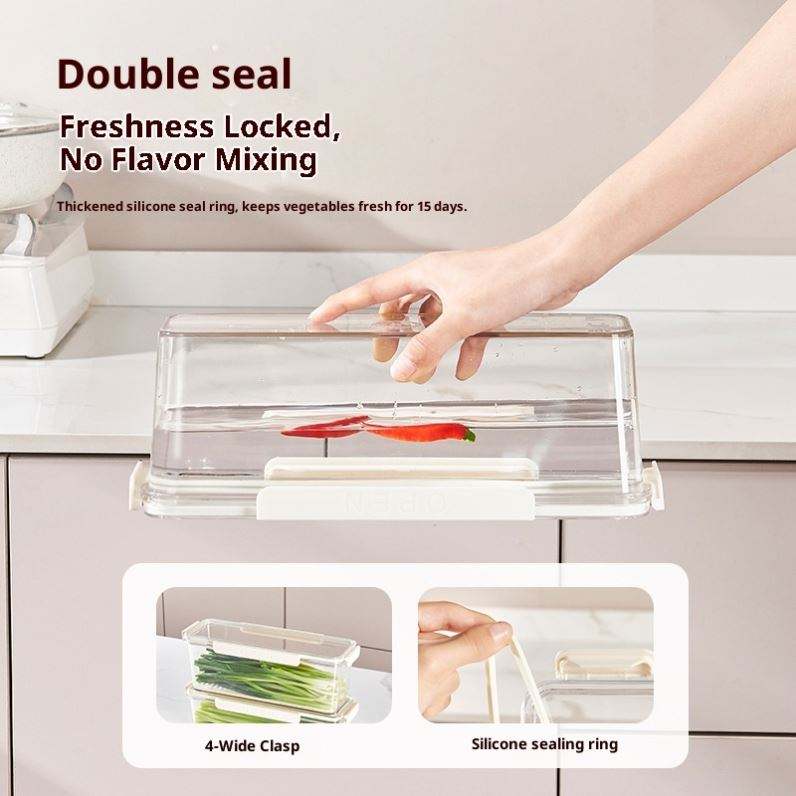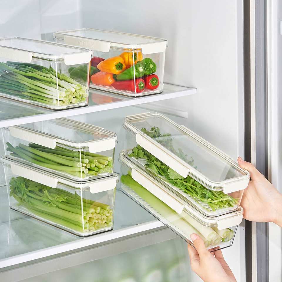 กล่องเก็บของพลาสติกทรงสี่เหลี่ยมผืนผ้า กล่องเก็บต้นหอม ขิง กระเทียม บะหมี่ กล่องเก็บอาหารเกรดอาหาร สำหรับครัว รักษาความสดใหม่ ปิดผนึกอย่างดี