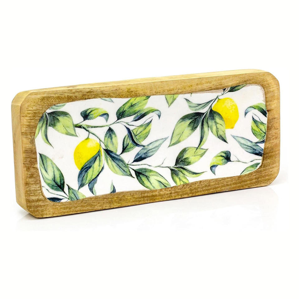 จานเสิร์ฟทรงสี่เหลี่ยมผืนผ้าถาดไม้มะม่วงเคลือบเลมอนออร์ชาร์ดสำหรับขนมขบเคี้ยว