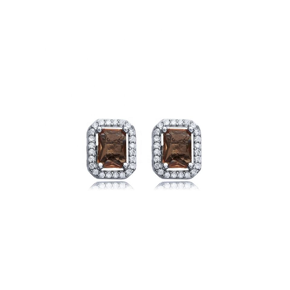 ต่างหูเงินแท้ 925 รูปทรงสี่เหลี่ยมผืนผ้า ประดับด้วยพลอยซัลตานไนต์ ดีไซน์ CZ งานแฮนด์เมดจากตุรกี ขายส่ง