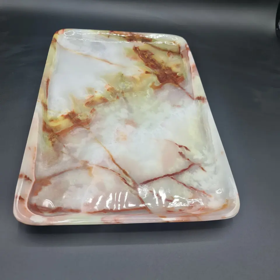 ถาดเสิร์ฟหินอ่อนโอนิกซ์สีขาวทรงสี่เหลี่ยมผืนผ้าถาดหินโอนิกซ์สีเขียว