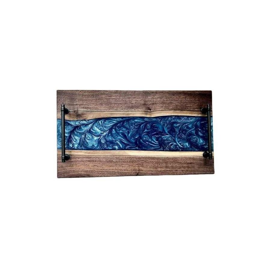 ถาดไม้รูปทรงสี่เหลี่ยมผืนผ้าและเรซิ่นอีพ็อกซี่สำหรับใช้ในบ้าน ถาดใส่อาหารบนโต๊ะอาหาร ถาดเสิร์ฟอาหารรูปทรงสี่เหลี่ยมผืนผ้า สินค้าขายดีที่สุด
