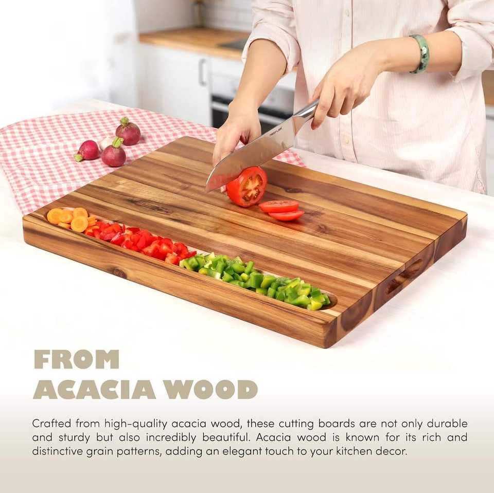 เขียงไม้รูปทรงสี่เหลี่ยมพร้อมชุดเขียงหั่นผักและผลไม้ดีไซน์สวยงาม