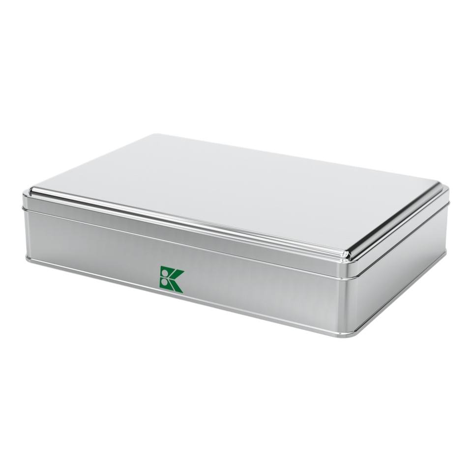 กล่องดีบุกทรงสี่เหลี่ยมผืนผ้าสามารถ1.5 LT ทรงถั่ว256x168มม. x H35มม. 1.50 LT ฝาลื่น