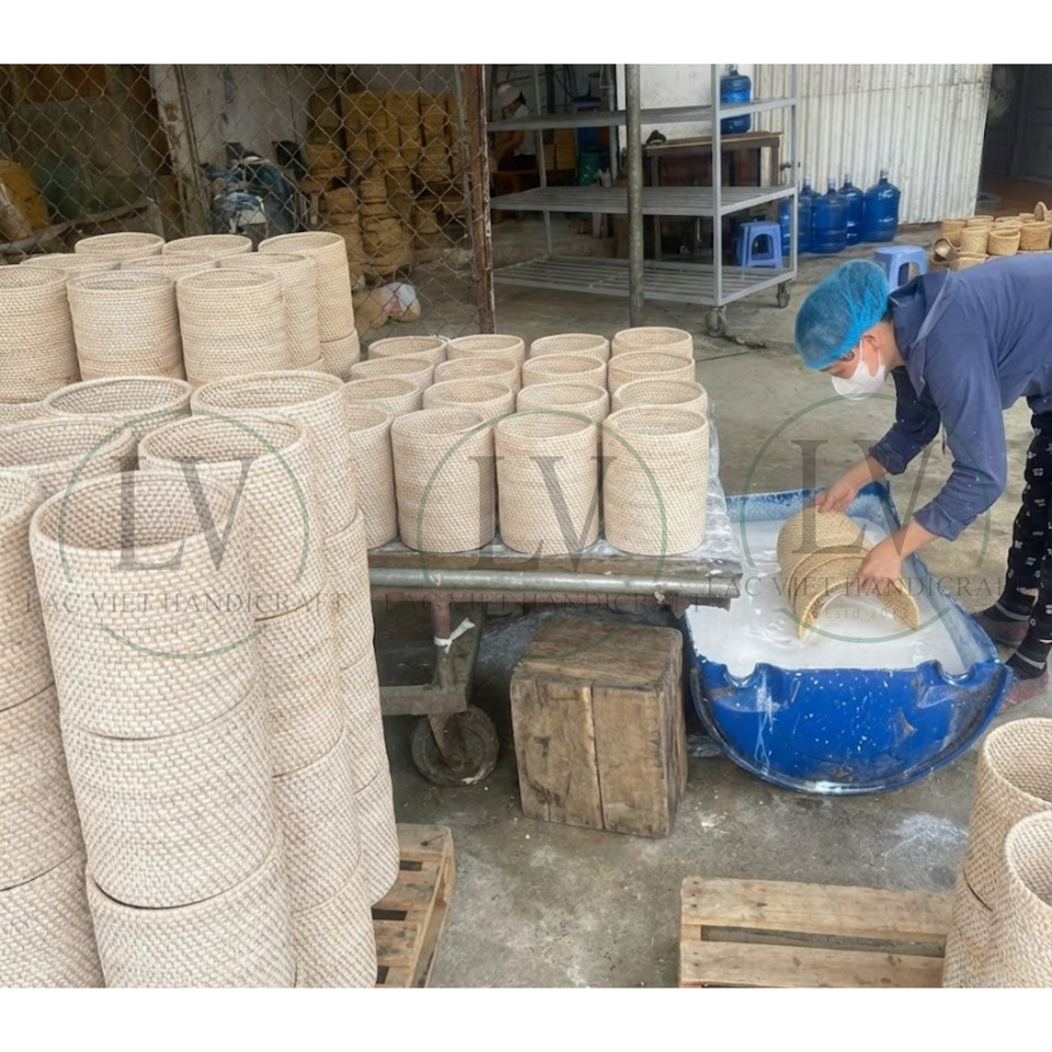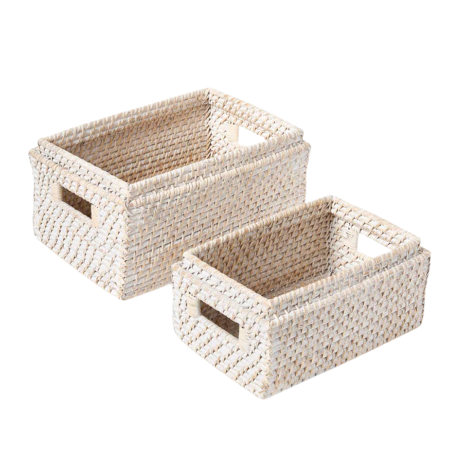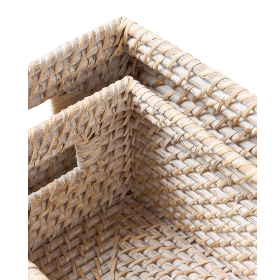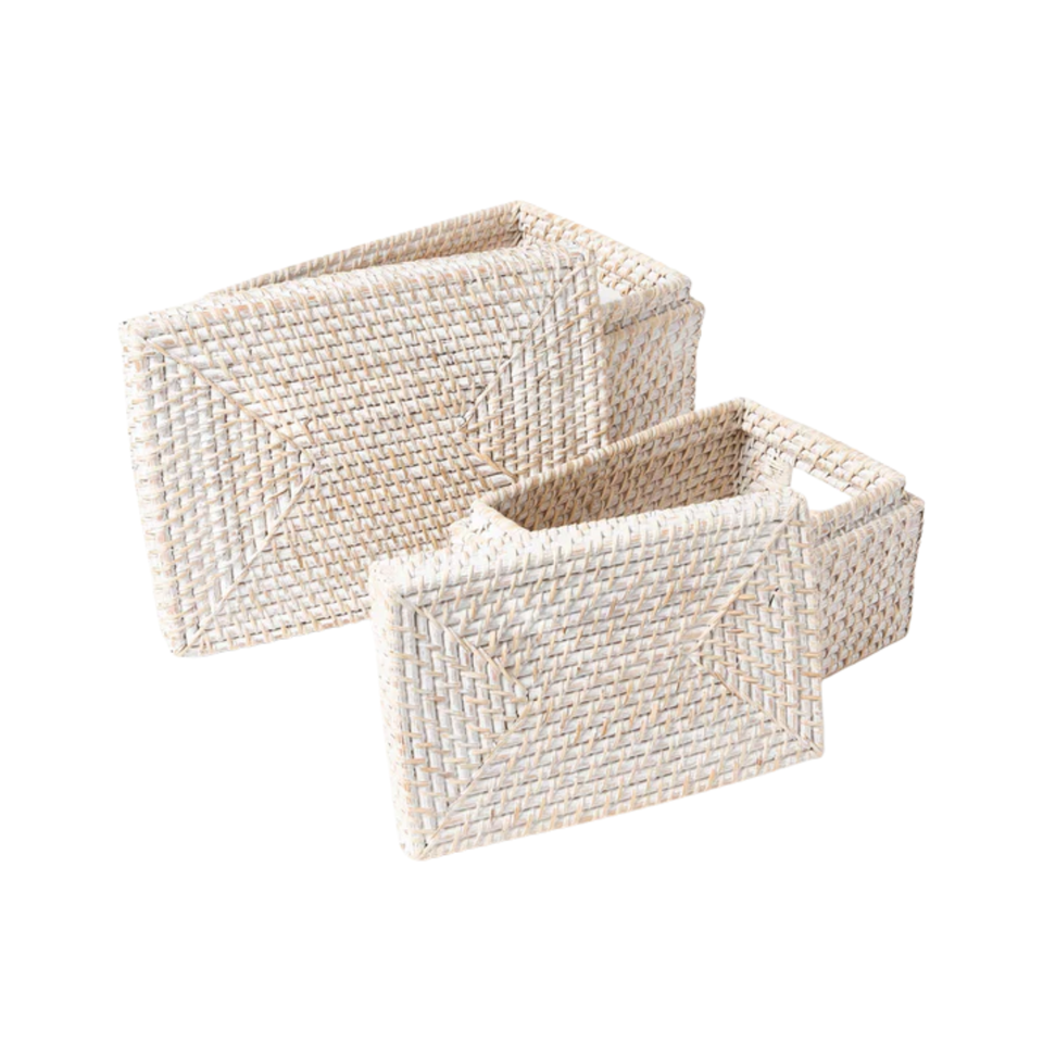 ตะกร้าเก็บของสี่เหลี่ยมผืนผ้าสีขาว ทำจากหวาย กล่องหวาย วัสดุคุณภาพสูง ของตกแต่งโต๊ะที่ต้องมี ขายส่งจากเวียดนาม