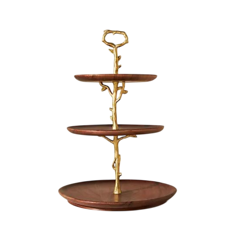 ขาตั้งเค้กไม้ทรงสี่เหลี่ยมพร้อมที่จับโลหะ 3 ชั้น สีน้ำตาลสำเร็จรูป สำหรับงานแต่งงาน งานวันเกิด งานเลี้ยงที่บ้าน อุปกรณ์จัดแสดงเค้ก