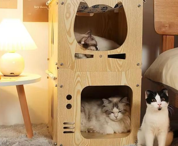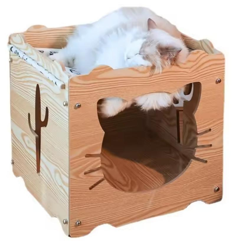 Rectangle Wooden Cat Bed Sustainable Eco-Friendly Cartoonish and Cute Style Recyclable Multi-functional Pet House for Cats