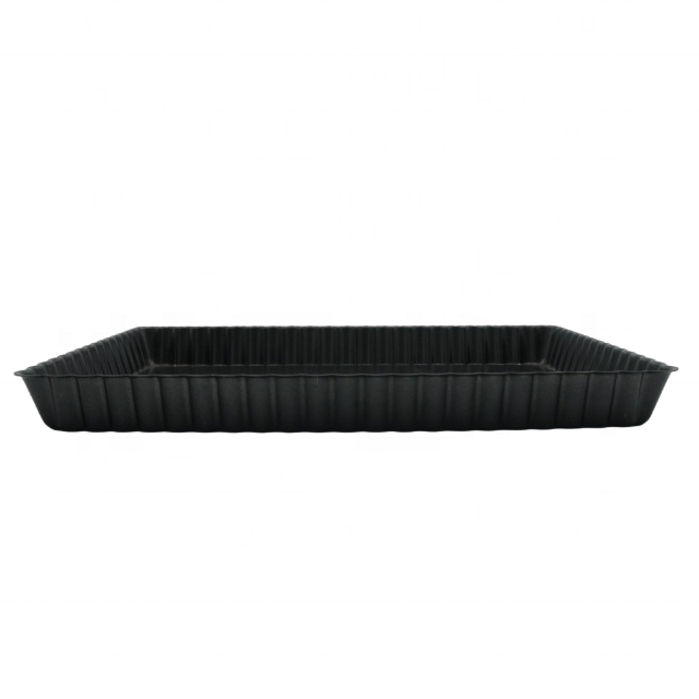 แม่พิมพ์ถาดพิซซ่าทำจากเหล็กกล้าคาร์บอนทรงสี่เหลี่ยมผืนผ้า (29x20ซม.) เครื่องมือทำขนมอบแบบถอดได้ฐานหลวม