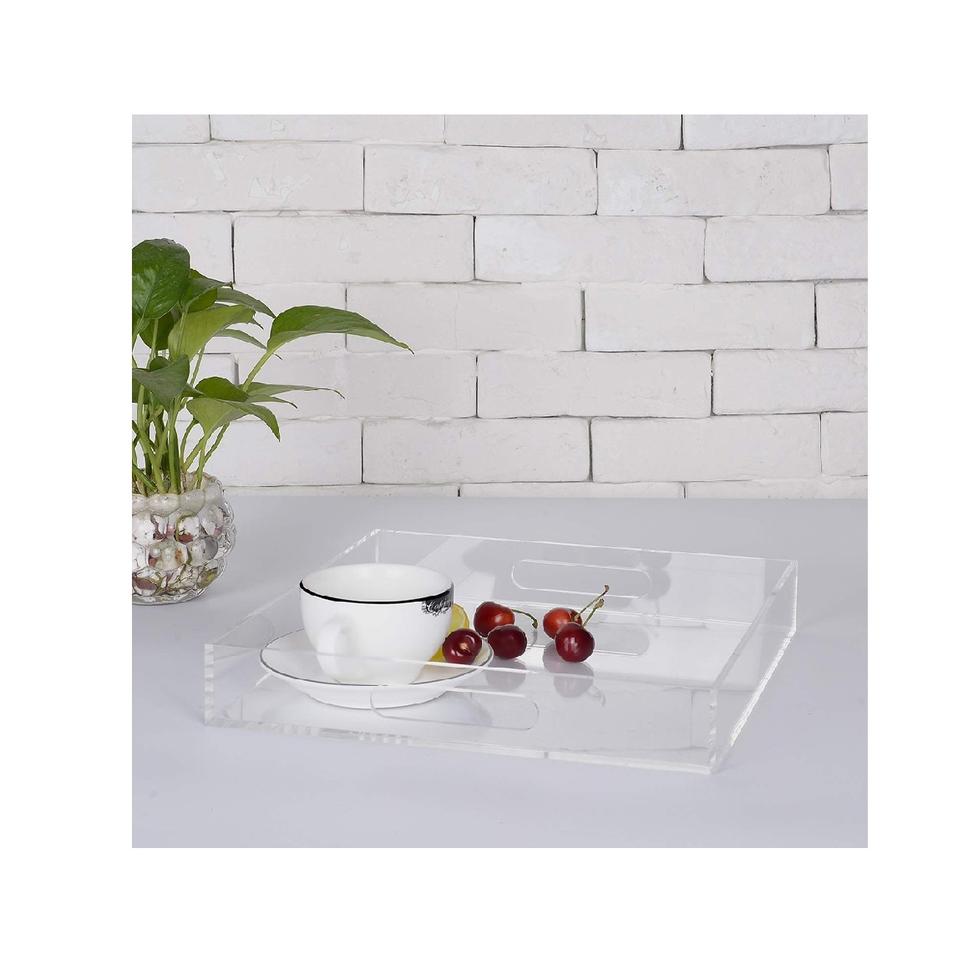 ถาดเสิร์ฟอะคริลิคทรงสี่เหลี่ยมผืนผ้า พร้อมหูจับ สำหรับงานแฮนด์เมด สีธรรมชาติ บรรจุภัณฑ์แบบกำหนดเอง