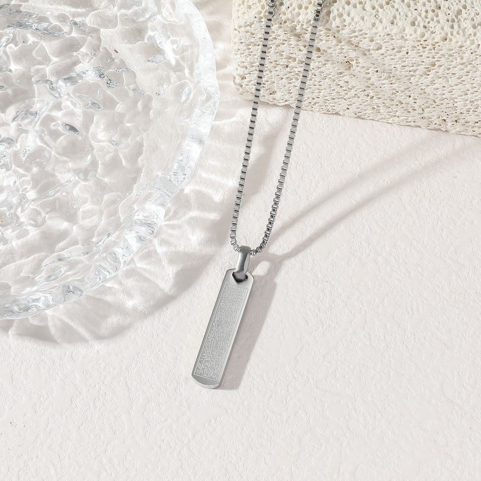 สร้อยคอแฟชั่นสแตนเลสกันน้ำทรงสี่เหลี่ยมผืนผ้า สไตล์อาหรับ อิสลาม มุสลิม สำหรับผู้ชายและผู้หญิง ขายส่ง ปี 2025