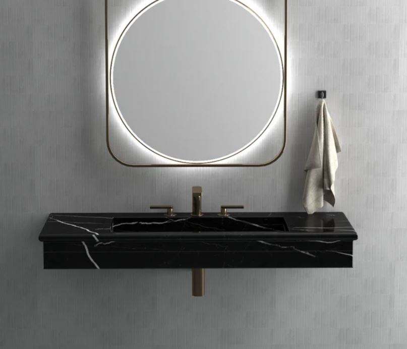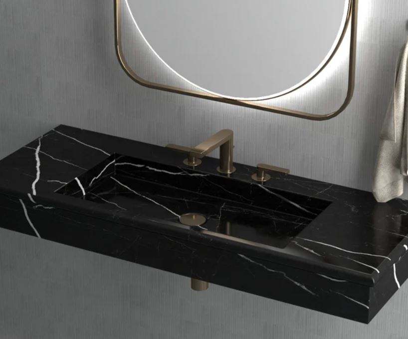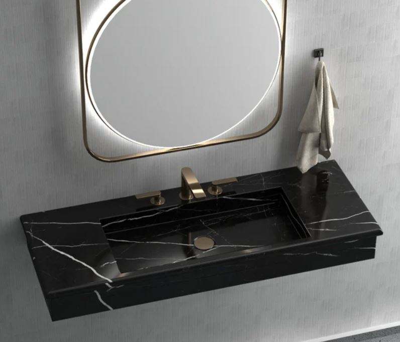 อ่างล้างหน้าในห้องน้ำลายหินอ่อนสีดำทรงสี่เหลี่ยมอ่างล้างหน้าหินธรรมชาติดีไซน์หรูหราทันสมัย