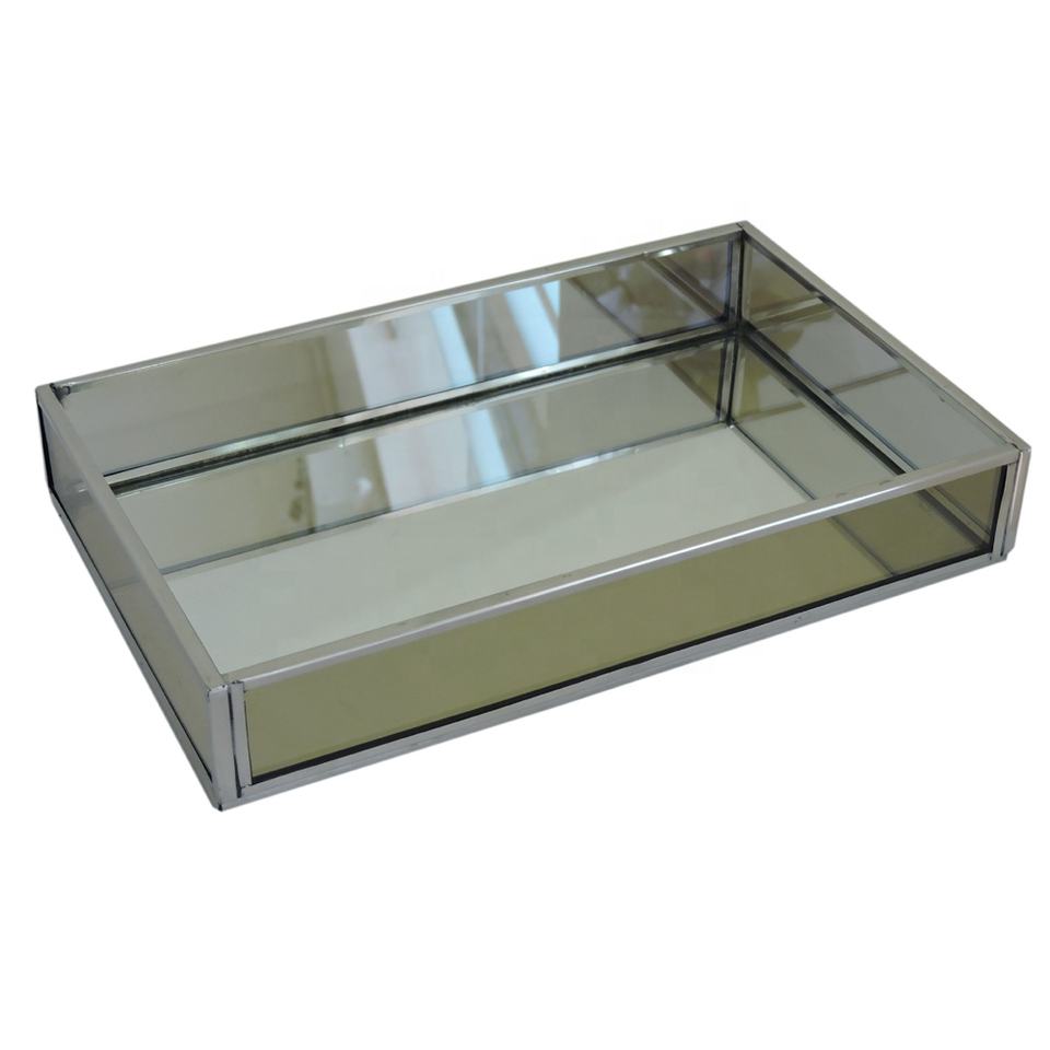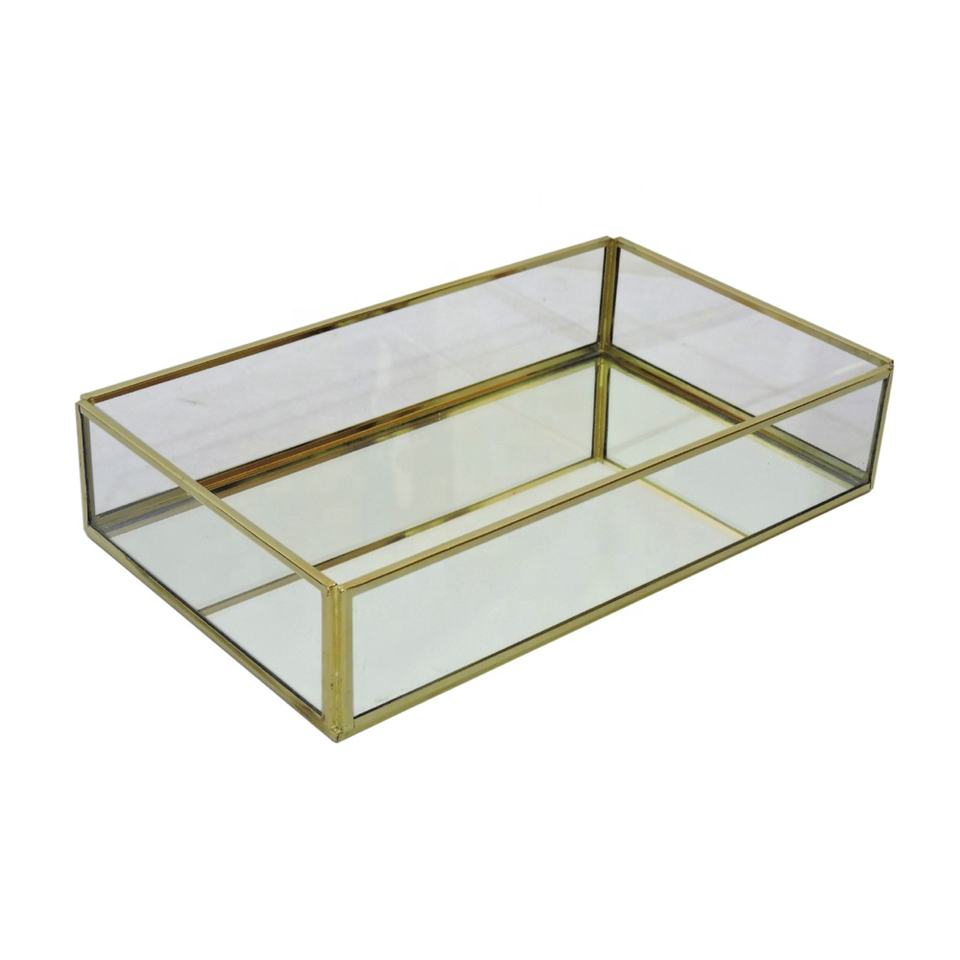 ถาดรองจัดแสดงเครื่องประดับแก้วและทองเหลืองทรงสี่เหลี่ยมผืนผ้าสำหรับจัดเก็บเครื่องประดับอย่างมีสไตล์