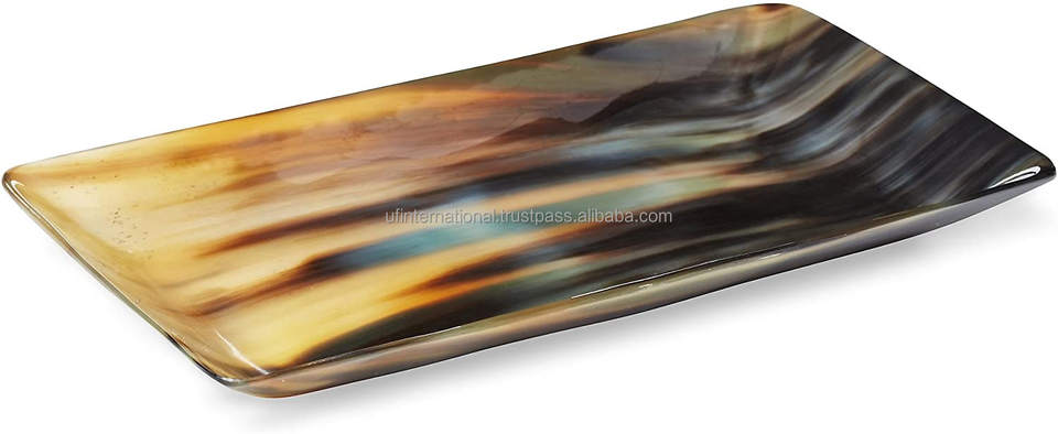 ถาดเสิร์ฟฮอร์นควายทรงสี่เหลี่ยมผืนผ้า,ถาดทำมือรูปเรียวสำหรับเสิร์ฟกาแฟในบ้านห้องครัว