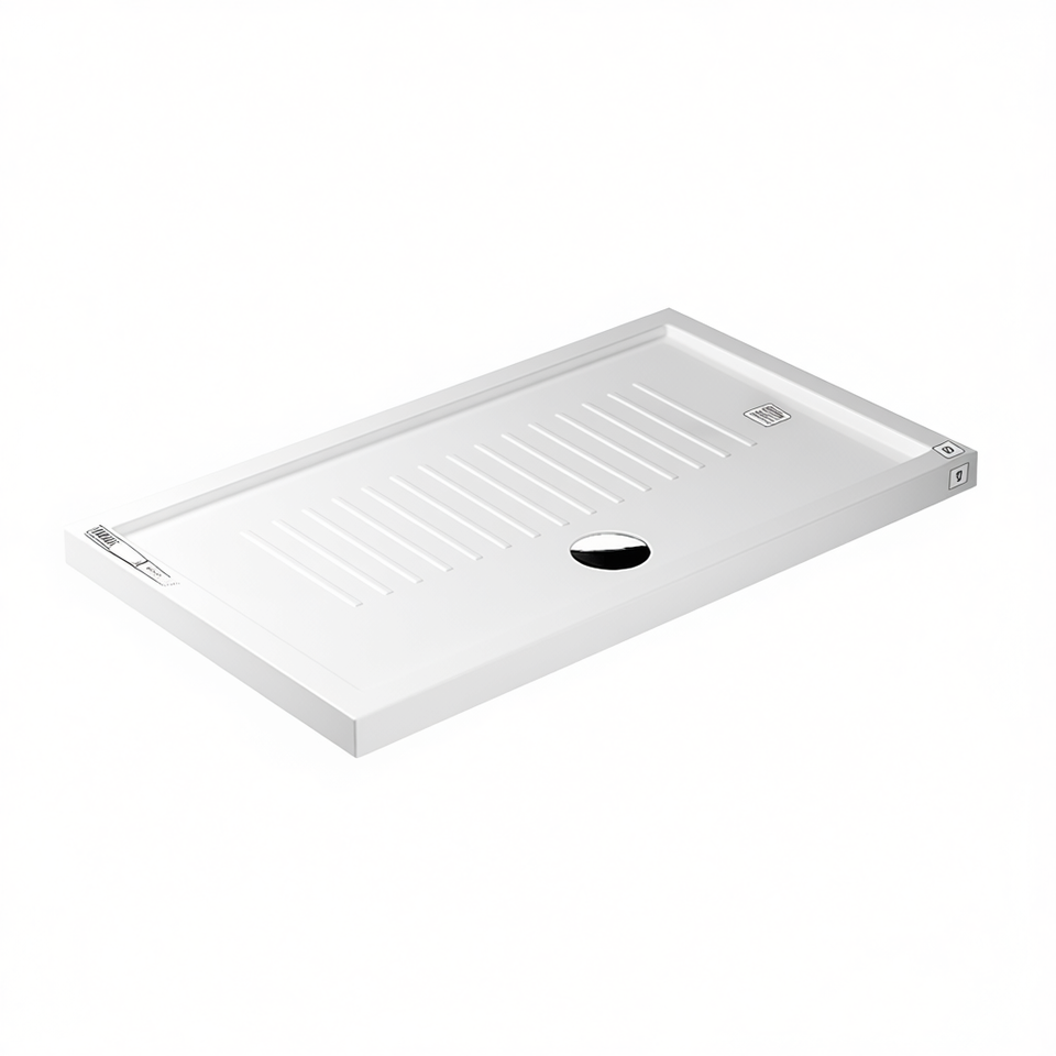 ถาดรองอาบน้ำเซรามิคทรงสี่เหลี่ยมผืนผ้า 80 x 100 ซม. สูง 6 ซม. พร้อมร่องระบายน้ำสำหรับใช้ในห้องน้ำ