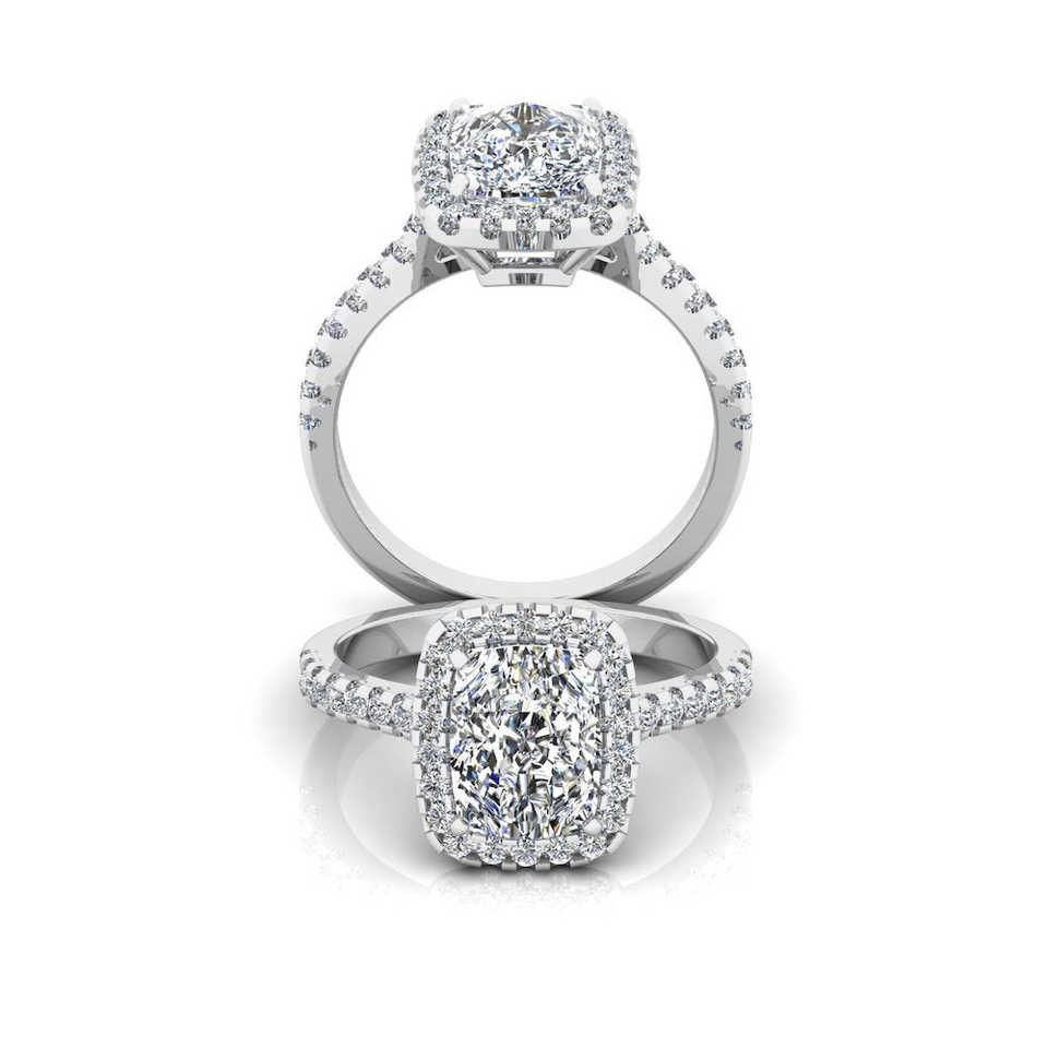 แหวนหมั้นทรงสี่เหลี่ยมประดับเพชรโมอิสซาไนต์ทรงรัศมี ดีไซน์หรูหราและทนทาน เหมาะสำหรับงานแต่งงาน