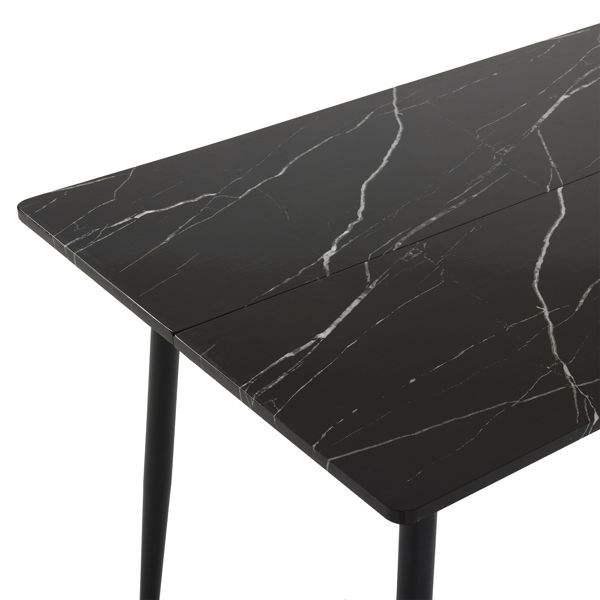 โต๊ะรับประทานอาหารสี่เหลี่ยม N101สีดำ MDF ขนาด140*76*76ซม. พร้อมพื้นผิวหินอ่อนทำจาก PVC และถอดง่าย
