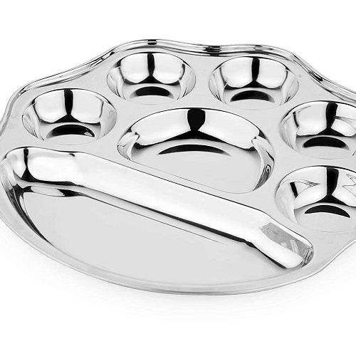 BB Rectangular Electrolytic Stainless Steel 7-Compartment Lunch Tray for Fast Food Restaurant School Use with Dinner Plates