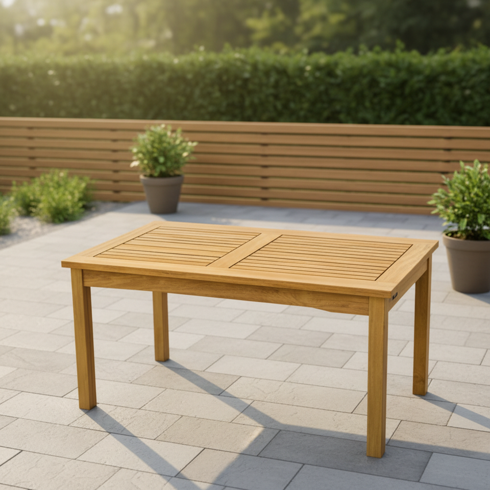 โต๊ะไม้สักพับได้ทรงสี่เหลี่ยมสำหรับใช้ในโรงแรมและสวน ดีไซน์ทันสมัยพร้อมลายไม้ธรรมชาติ แข็งแรงทนทาน และฝีมือประณีตระดับพรีเมียม