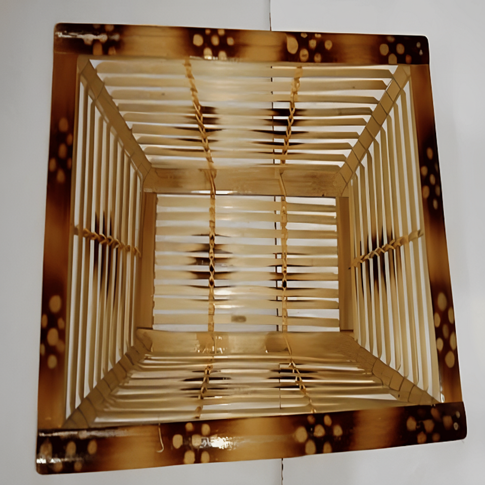 ถาดตะกร้าไม้ไผ่สานด้วยมือทรงสี่เหลี่ยมผืนผ้าพร้อมจุดเผารายละเอียดการตกแต่งและการจัดงานสำหรับบ้าน
