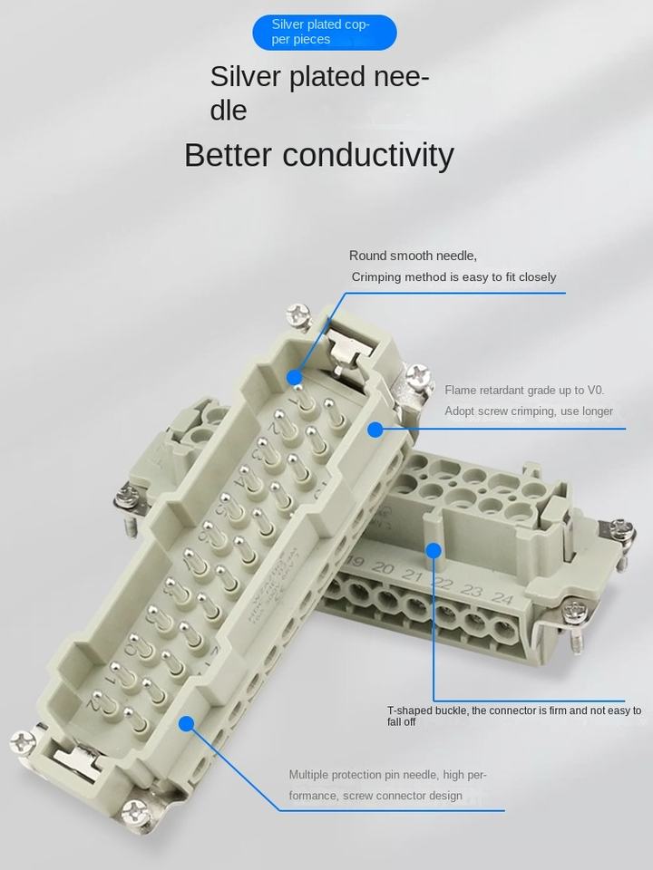 ขั้วต่อไฟฟ้าอะลูมิเนียม DIN แบบสี่เหลี่ยม ทนทาน รุ่น HE-6-10-16-24-32-48 แกน สำหรับงานอุตสาหกรรม กันน้ำ แบบปลั๊กและเต้ารับสำหรับการบิน