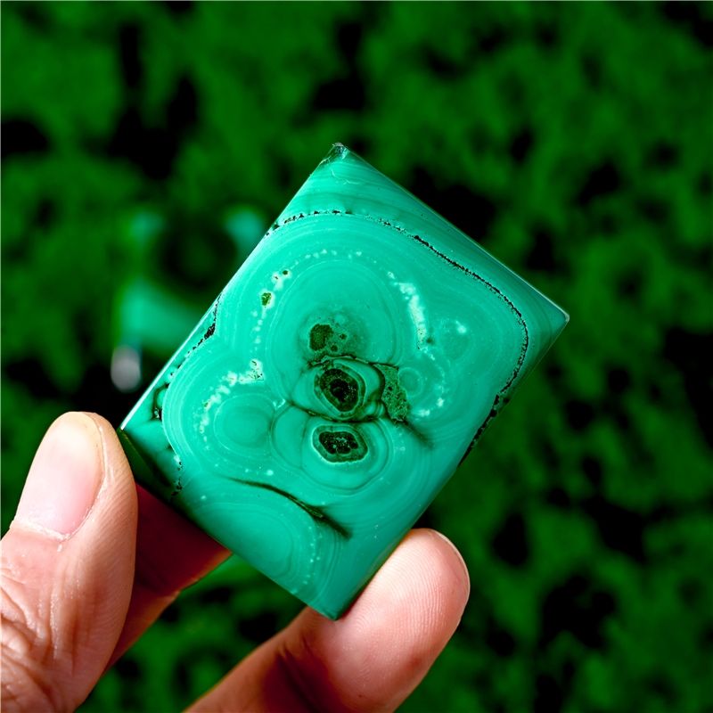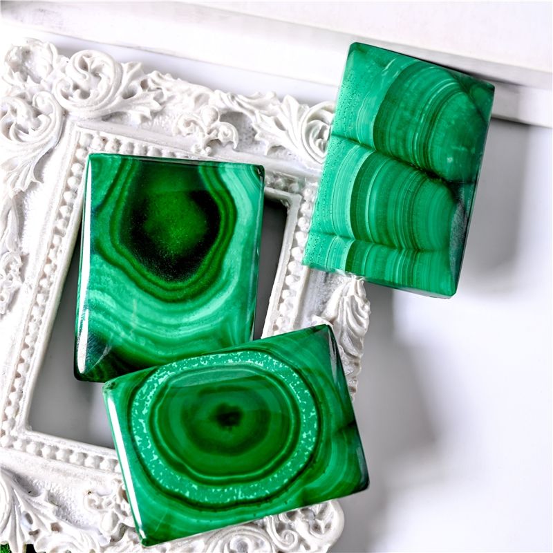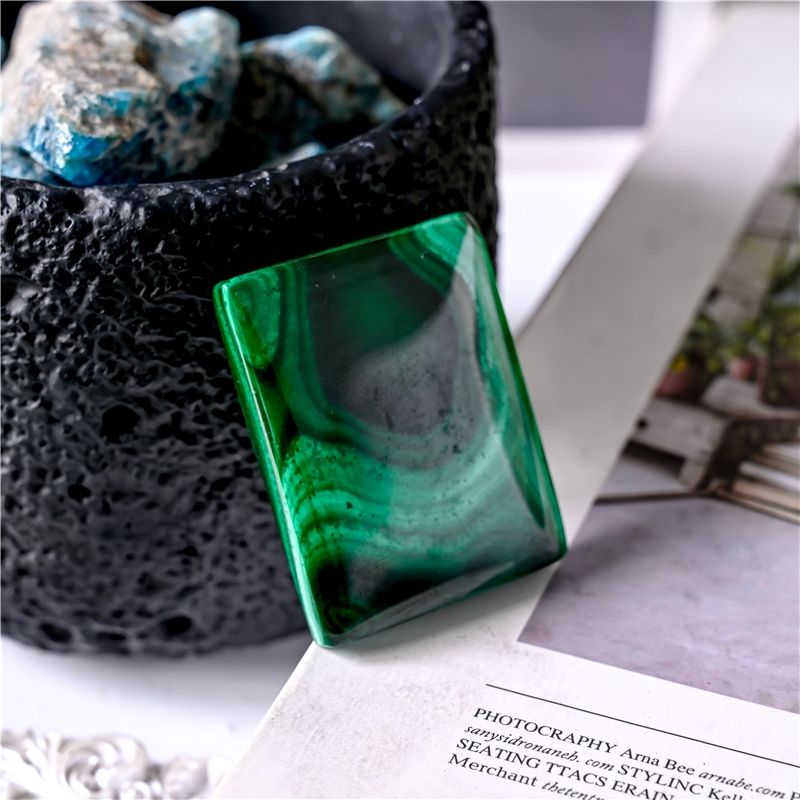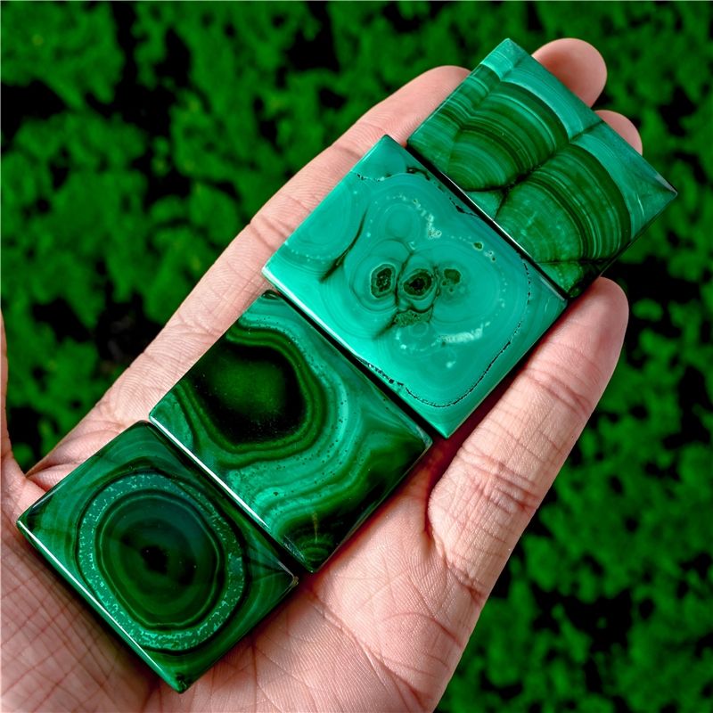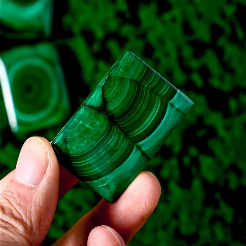 หินมาลาไคต์ทรงสี่เหลี่ยมธรรมชาติ แฟชั่นฮวงจุ้ยสำหรับทำเครื่องประดับ สร้อยคอ สร้อยข้อมือ จี้นำโชคสุดฮิต