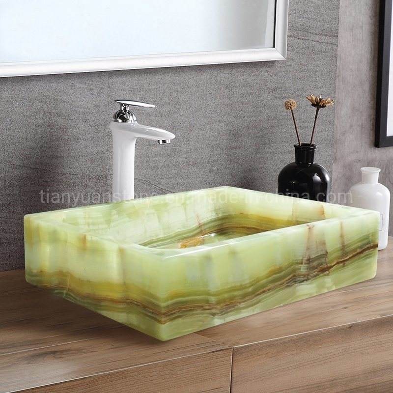 อ่างล้างจานหินอ่อนโอนิกซ์ทรงสี่เหลี่ยมผืนผ้าอ่างล้างมือหินธรรมชาติ