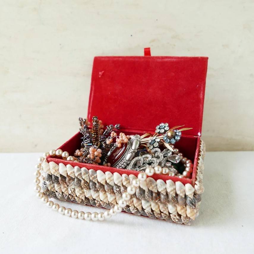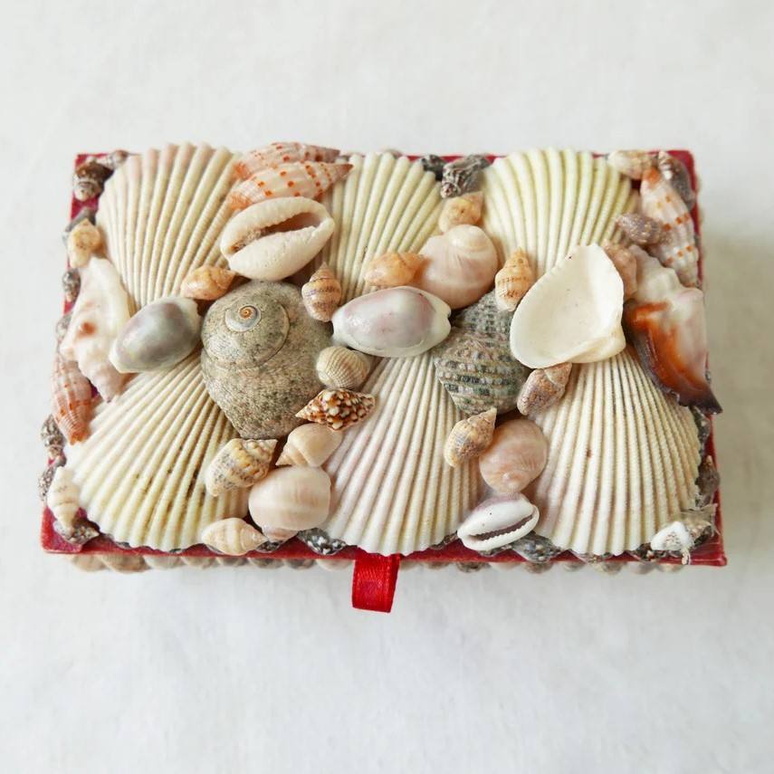 กล่องเครื่องประดับเปลือกหอยสี่เหลี่ยม,กล่องของขวัญเปลือกหอยทะเลพร้อมเปลือกหอยธรรมชาติและซับ Pelt ด้านใน