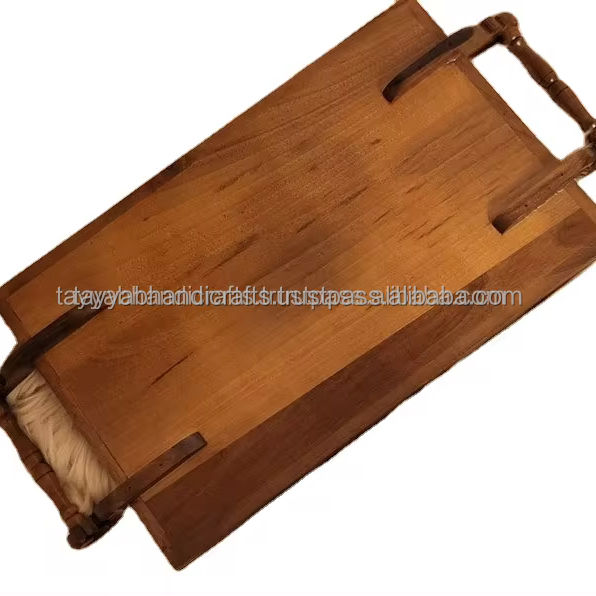 ถาดเสิร์ฟไม้อะคาเซียพร้อมถาดโลหะตกแต่งสำหรับใช้ในบ้านสำหรับเสิร์ฟอาหารจากอินเดีย