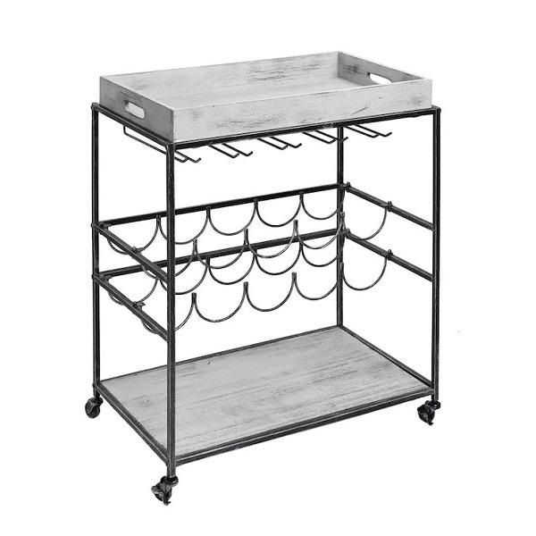 รถเข็นเสิร์ฟอาหารทรงสี่เหลี่ยมผืนผ้าสำหรับเสิร์ฟอาหารบาร์โลหะสีดำขนาดกลางสำหรับเสิร์ฟไวน์และเบียร์