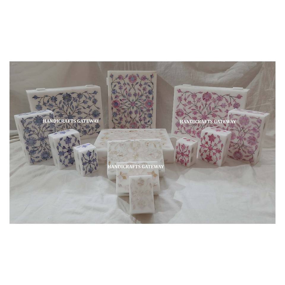 หินอ่อนสีขาวธรรมชาติรูปทรงสี่เหลี่ยมผืนผ้า ประดับด้วยมุก ดีไซน์ลายดอกไม้ ทำด้วยมือ ใช้สำหรับบรรจุภัณฑ์นาฬิกาและเป็นของขวัญ