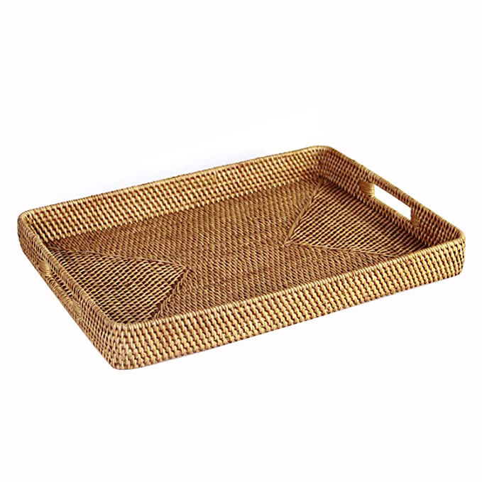 ถาดไม้เสิร์ฟอาหารสำหรับงานแต่งงาน ตกแต่งโต๊ะอาหาร รูปทรงสี่เหลี่ยมผืนผ้า ด้ามจับสีทอง สไตล์โดดเด่น เหมาะสำหรับร้านกาแฟและห้องครัว
