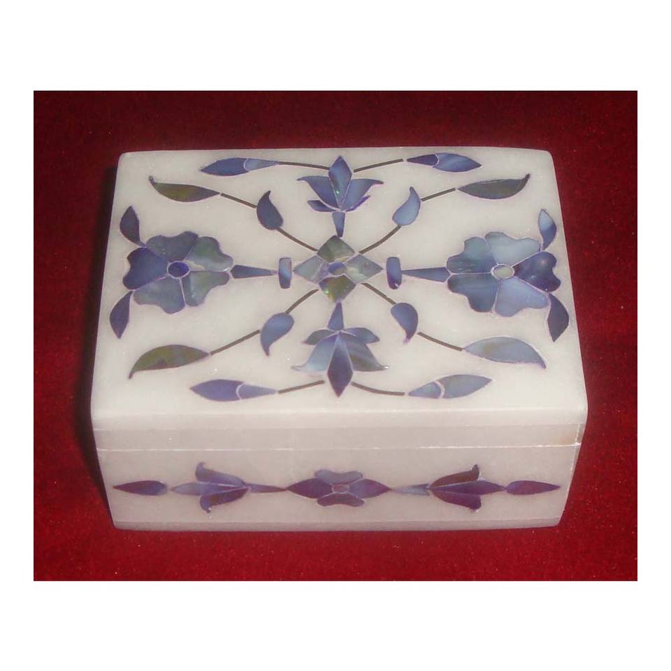 กล่องเก็บเครื่องประดับทรงสี่เหลี่ยมผืนผ้าหินอ่อนสีขาวไข่มุกแม่มุกสำหรับตกแต่งฝังที่น่าจดจำไม่เหมือนใคร