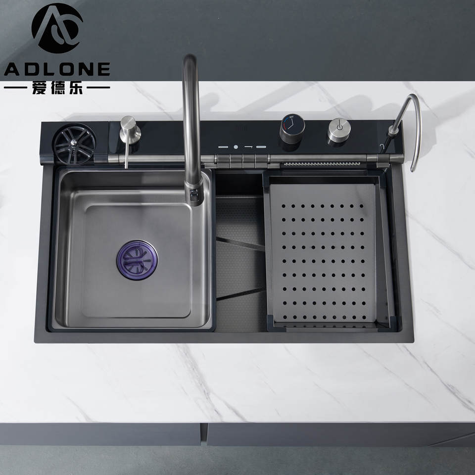 อ่างล้างจานหัวมังกรชามเดียวทรงสี่เหลี่ยมผืนผ้าอ่างล้างจานสแตนเลส304 201พร้อมน้ำตก